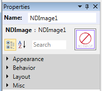 This panel lists a set of properties of the focused control in the current form designer and allows to set the values of the properties.